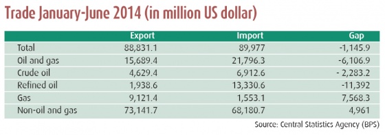 The trade balance secured a $6.12 billion gain from non-oil and gas trade in the first half of this year, derived from exports of $73.14 billion and imports of $68.18 billion, the Central Statistics Agency (BPS) has reported.
